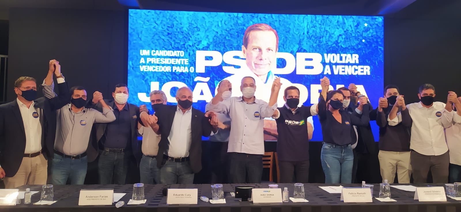 Em sua fala, o prefeito Felício Ramuth afirmou. “Tenho duas inspirações na minha vida pública: José Serra e João Doria. Eu me espelho em você na minha gestão”, disse, se dirigindo a Doria. “Você vai, mais uma vez, sair vencedor dessas prévias”, afirmou Ramuth.