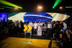 Em uma festa concorrida com mais de 6 mil pessoas e com a presença do pré-candidato tucano à Presidência da República e presidente nacional do partido, Geraldo Alckmin, o PSDB de São Paulo oficializou neste sábado a chapa que será encabeçada por João Doria nas eleições de outubro.