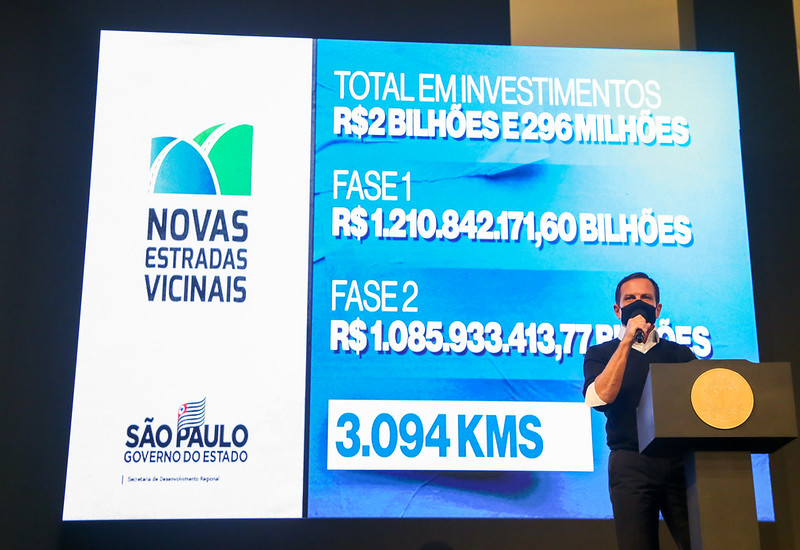 O Governador João Doria apresentou nesta segunda-feira (14), no Palácio dos Bandeirantes, a nova fase do programa Novas Estradas Vicinais, que vai beneficiar outras 140 vias com 1.531 quilômetros de melhorias e investimentos de R$ 1,08 bilhão em recursos do BID (Banco Interamericano de Desenvolvimento). O programa coordenado pelo DER (Departamento de Estradas de Rodagem) já soma investimentos de R$ 2,29 bilhões e vai gerar 25 mil empregos, entre vagas diretas e indiretas.